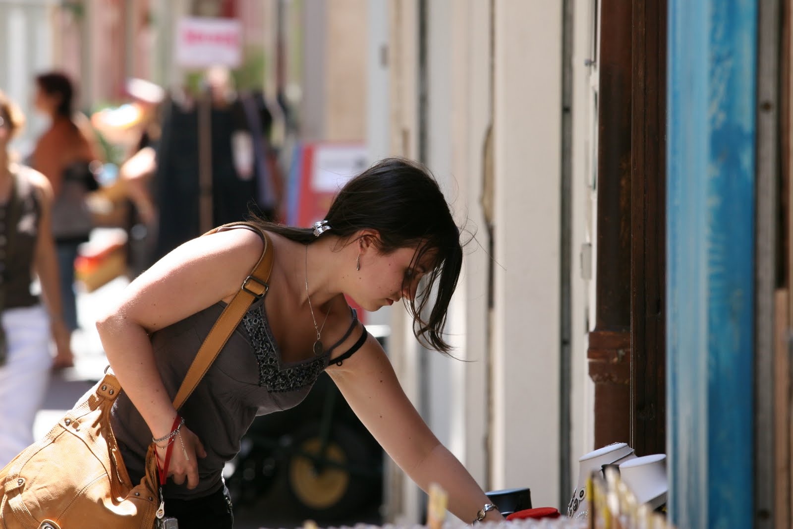 | Me in 2009 - browsing the market at l'Isle sur la Sorgue. |